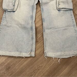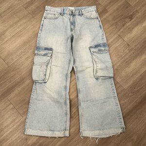 Zara TRF Mid Rise Cargo Baggy Loose Fit Light Tan Wide Leg Y2K Denim