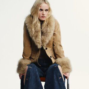 Zara Tailored Suede Leather Blazer with Faux Fur 4341/811/711