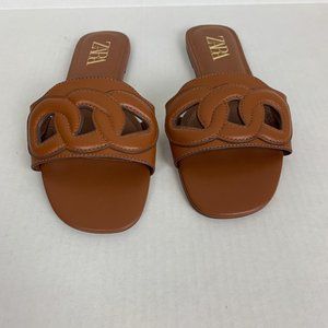 Chic tan sandals with a braided strap. Ideal for everyday style.