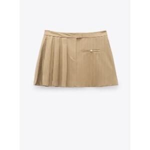 Zara Tan Brown Pinstriped Box Pleated Mini Skirt with Pocket Size XL