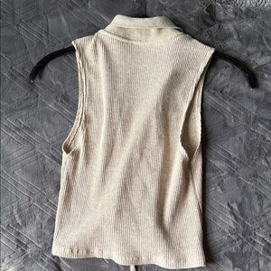 Chic sleeveless blouse with a stylish collar. Features a drawstring detail for a modern look.