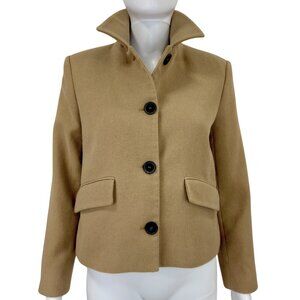 Zara Tan Cropped Wool-Blend Jacket | Minimalist Neutral Short Coat | Size S
