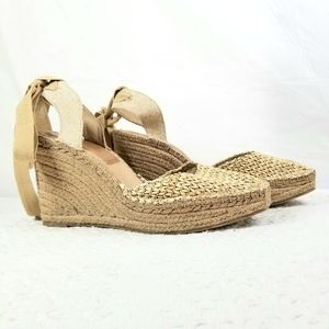 Zara Tan Fabric with Jute Wedge Platform Heels Espadrille Sandals, US 10.5