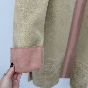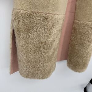 Zara Tan Faux Suede Teddy Sherpa Jacket Coat Oversized Size Large Pink