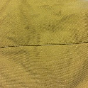 In great condition. Only flaw is the belt is missing and small marks on the back of one of the sleeves which is hardly noticeable. Has down feathers.
