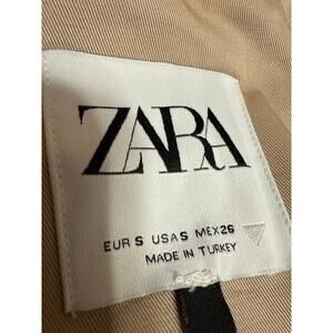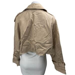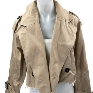 Zara Tan Khaki Long Sleeve Collared Raw Hem Cut Off Cropped Coat Jacket Size S