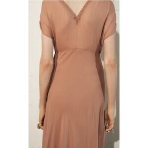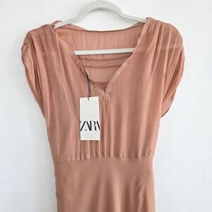 Zara ZW Collection Tan Lace Lined Round Neckline Tie Waist Midi Dress Size Small