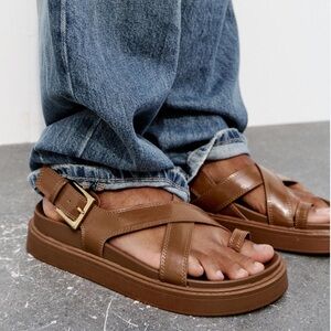 Zara Tan Leather Cross-Strap Sandals