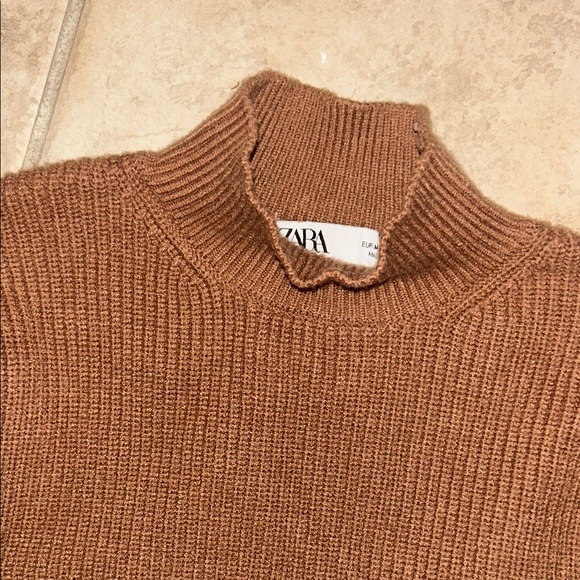 Zara Tan Ribbed Knit Top