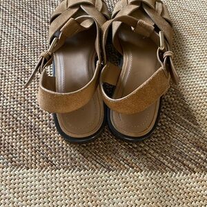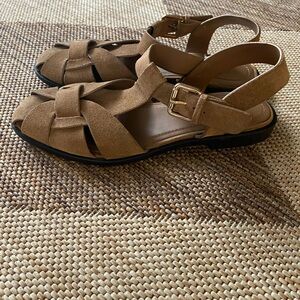Stylish and comfortable women's tan sandals perfect for any occasion. Features a chic design with a secure buckle closure.
