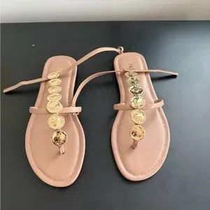 Zara Tan Sandals with Gold Accents