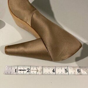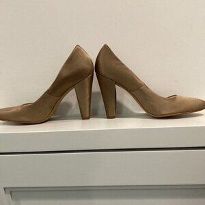 Trendy, feminine, date, sale, classic, girly, comfortable, comfy, ZARA Tan Satin Pumps Block Heels, lightweight, chic, Office, business, work, Basic, flattering, flirty, Casual, Cute, Home, school, holiday, party, evening, sophisticated, effortless, swp , normcore, dark academia, cocktail, wedding guest, formal, elegant, prom,