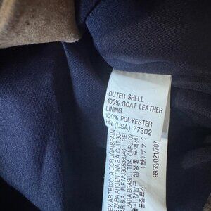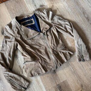 Camel colored genuine suede leather jacket. Inside and outside are clean. This is a sought after jacket / bloggers favorite. It has a feminine peplum shape.