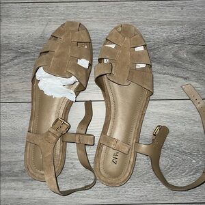 Stylish tan suede sandals. Features adjustable ankle strap. Perfect for casual wear. I love it, but it’s a little too big for me I’m a true 8.5, this is a true size 9.
