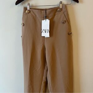 Zara Tan Trouser Pants Sailor Buttons High Rise Elastic Waist NEW Size XS