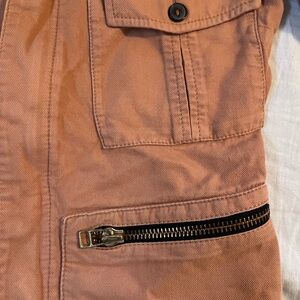 Stylish tan utility jacket with front pockets. Features zip details for a modern look. Ideal for versatile wear.