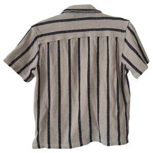 Zara Tan and Navy Stripe Textured Short Sleeve Collared Button Down-Medium