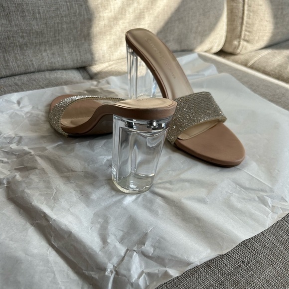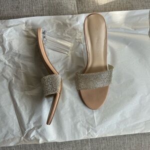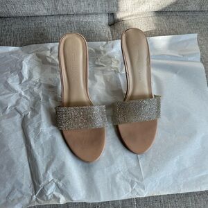 These Zara sandals feature a chic tan base complemented by a dazzling silver strap, perfect for adding a touch of glamour to any outfit. Designed with a comfortable flat sole, they are ideal for casual outings or dressy occasions. The slip-on style ensures ease and convenience, making them a versatile addition to your footwear collection.