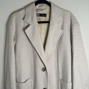 Zara Tan and White Houndstooth Blazer Size XS