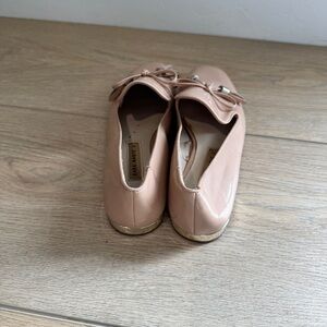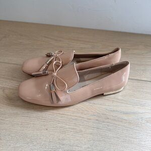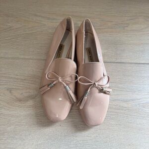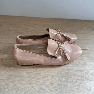Zara Tan patent Leather tassels bow shoe with gold heel size 37
