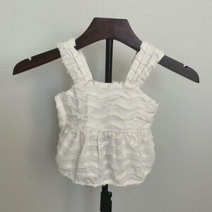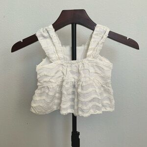 This versatile Zara top is a must have for any stylish little girl’s wardrobe! It fits true to size and in perfect condition, no flaws! My daughter loved this one, super cute! The lightweight fabric and relaxed fit make it easy for any girl to throw on, while the subtle ruffle detail adds a sweet, feminine touch.