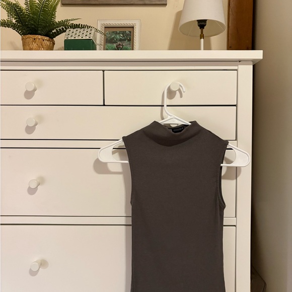 Versatile charcoal tank top by Zara. High neck! For layering or wearing alone.