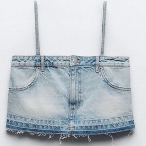 Zara Tank Top Cut Off Jeans Spaghetti Strap Crop Denim Distressed 70s 90s Y2K XS