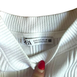 Zara Tank Top White Ribbed Stretch Size Small Excellent Condition Round Neck