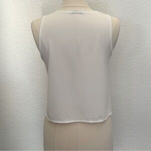 The Zara Tank Top in size small in white color is a stylish and trendy choice for women. This cropped top features a sleeveless design and adds a touch of elegance to any outfit. The tank top is accented with cutwork and embroidered details, giving it a unique and fashionable look. Sheer trim around the neck and armholes, and a sheer crepe fabric back panel, for a refined look. Perfect for casual wear or dressed up with accessories for a more formal occasion, this Zara tank top is a versatile addition to any wardrobe.