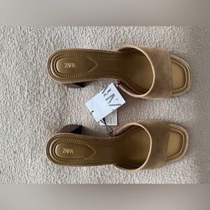 Zara Tan/khaki Mules with Block Heel