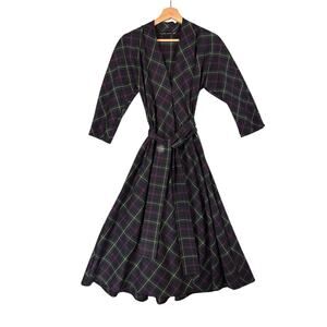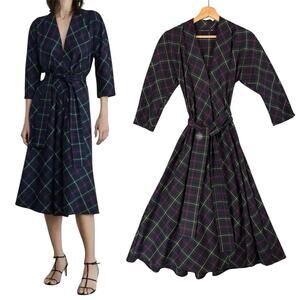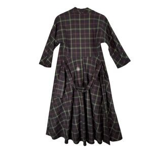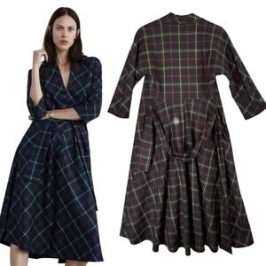 Zara Tartan Midi Dress Bloggers Fav Plaid SZ XS Women ALine Belt Green Outlander