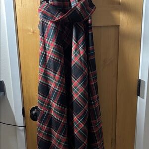 Chic tartan skirt with bold red and black pattern. Ideal for versatile styling. Size xs