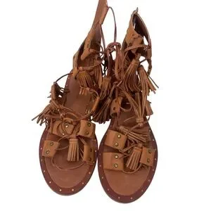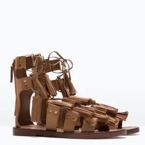 Zara Tassel Leather Roman Gladiator Sandals Size 39 March 2026