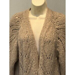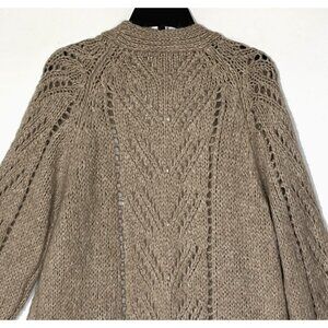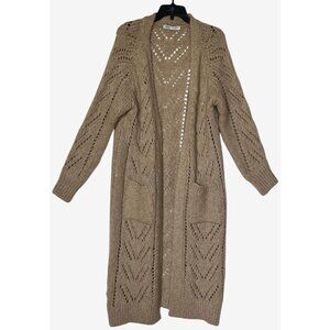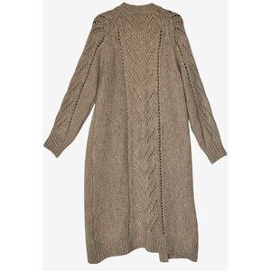 Zara Taupe Brown Knit Wool Blend Long Boho Open Cardigan Sweater