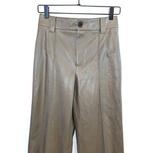 Zara | Taupe Francoise Straight Leg High-Waisted Faux Leather Trouser Pants | XS