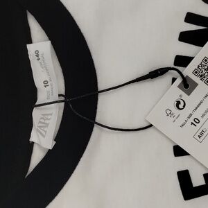Zara Tee 'Always Flying Around' Tee Size 10 White Jersey Style Short Sleeve …