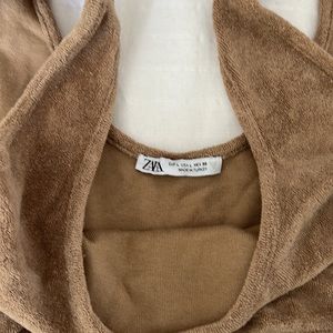 Zara Terry cloth shorts set in light mocha brown color. Top is lightweight with elastic band. Both size large