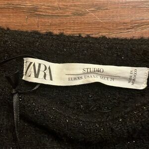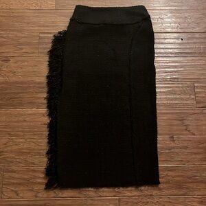 Zara Textured Black Midi Limited Edition Fringe Tweed Skirt Size XS