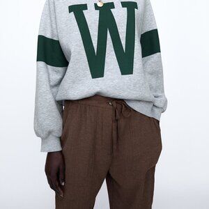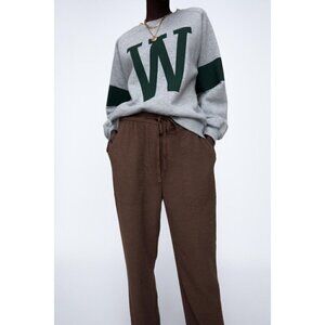 NWT Zara Textured High Waisted Drawstring Relaxed Pants Trousers