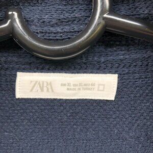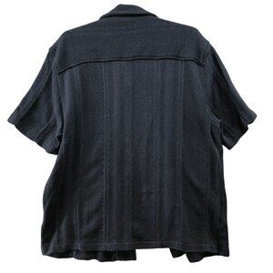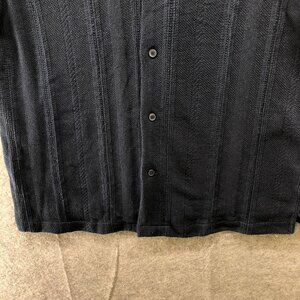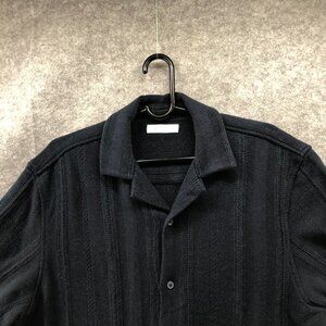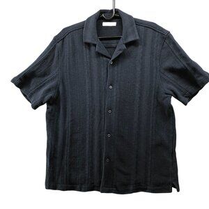 Zara Textured Knit Shirt Mens XL Navy Blue Short Sleeve Overshirt Relaxed Fit