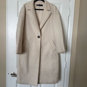 Zara Textured Oversized One Button Coat Size Medium. Ivory Color. Great condition. Oversized fit. Let me know if you have any questions.