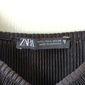 Zara Textured Plunging V-neck Cinched Front Cropped Ruffled Tank Top Black Large