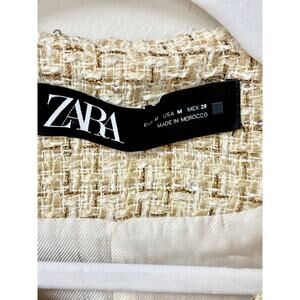 Zara Textured Sleeveless Button Front Vest Waistcoat With Belt Beige Women's M
