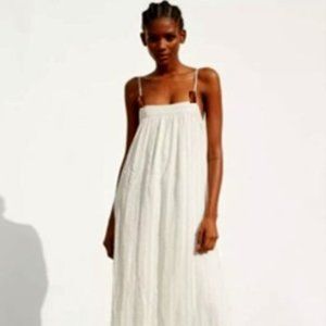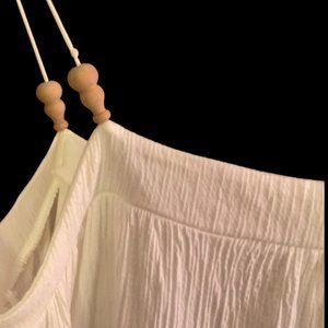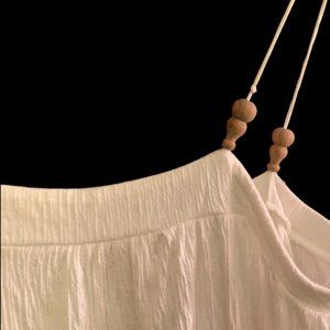 Good condition straps with wooden bead accents 97% cotton 3% spandex L 46" pit to pit 17"
