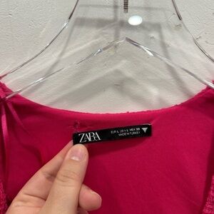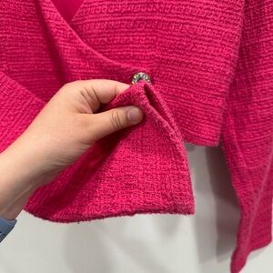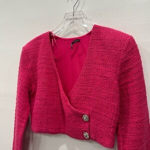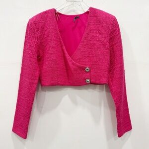 Zara Textured Structured Crop Tweed Fuchsia Hot Pink Blazer Jacket Large