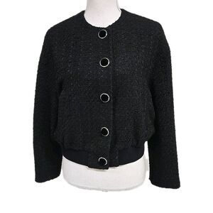 Zara Textured Tweed Bomber Cropped Jacket Lined Pockets Black Women’s Size L