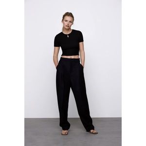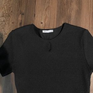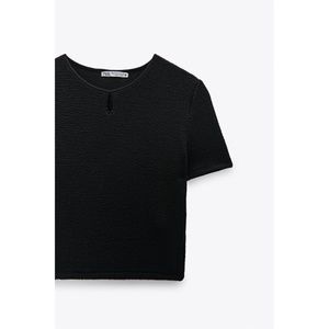 Zara Black Textured Weave Cropped Top With Front Keyhole. Size states Small but fits like an XS. 97% Polyester 3% elastane. Please ask all questions before purchasing!