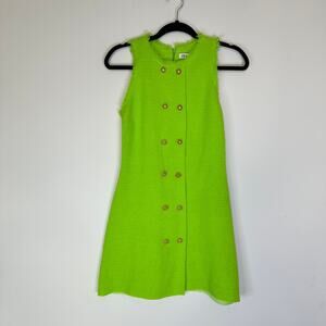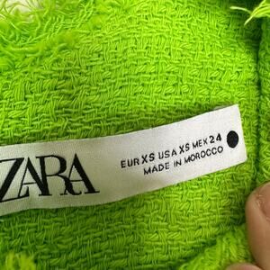 Zara Textured Weave Dress With Buttons Neon Green Size XS