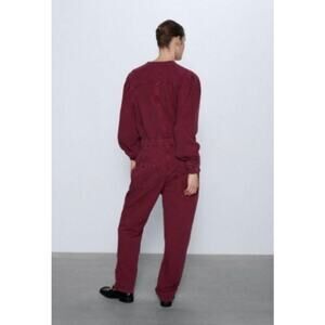 Zara The 80s Collection Devon Denim Wine Utility Jumpsuit size XS
