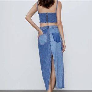 Zara The 90's Collection Patchwork Two Tone Denim Maxi Skirt 100% Cotton Retro